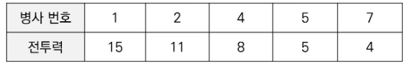 - j = 2 (병사 4) → 4 = 4 → (넘어감)