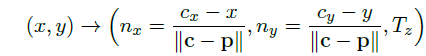 T 는 물체의 좌표를 말한다. 해당 논문은 2D object center를 loacalizing하고 object distance를 예측함으로써 3D translation을 예측한다. T를 이미지로 projection한 거를 c=(cx,cy)라 하자. 만약 네트워크가 c와 depth Tz를 알 수 있다면 Tx, Ty를 얻을 수 있다.